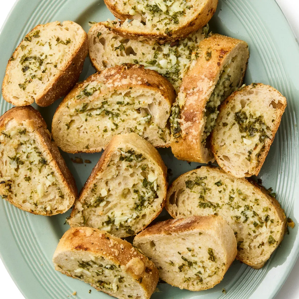 Warm bread brushed with rich garlic butter and herbs — perfect starter.