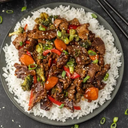 Savory beef or lamb atop fluffy rice for rich, fulfilling taste.